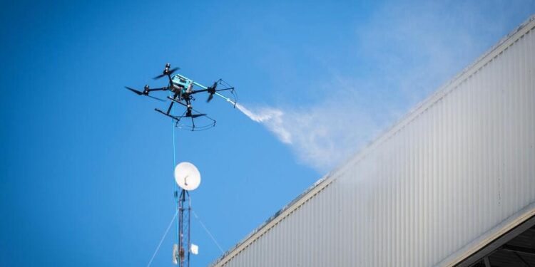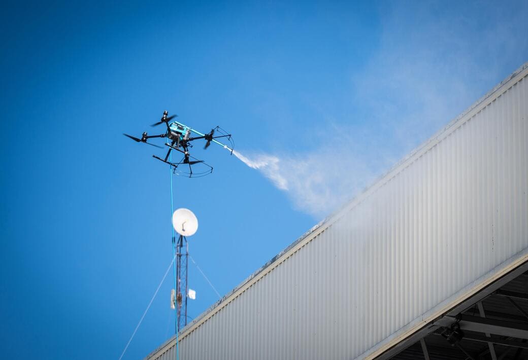 Durante el evento, se realizó una demostración de limpieza de altura con dron, un proceso innovador para la eliminación de graffiti, suciedad y limpieza de superficies en estructuras emblemáticas como el Arco de la avenida Revolución y el Palacio Municipal.